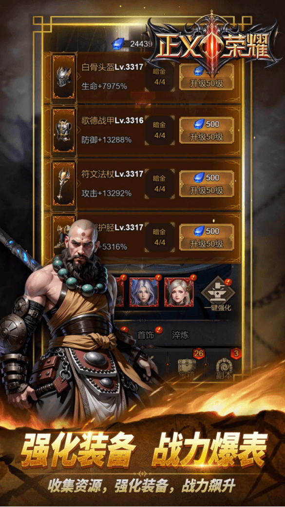 强化装备,战力爆表。收集资源,强化装备,战力飙升。